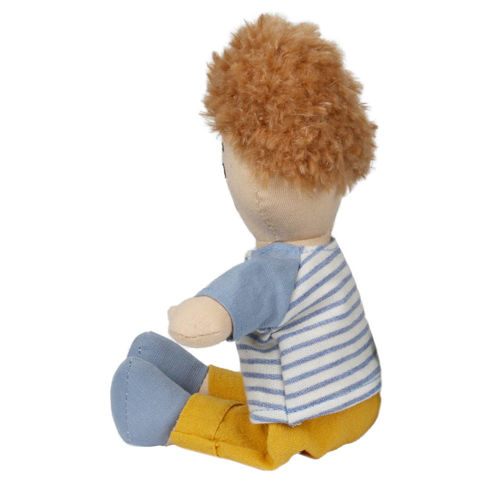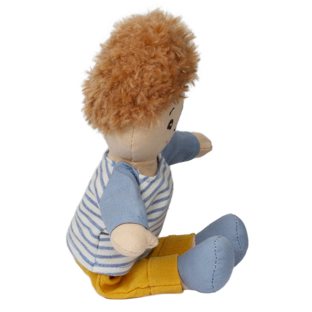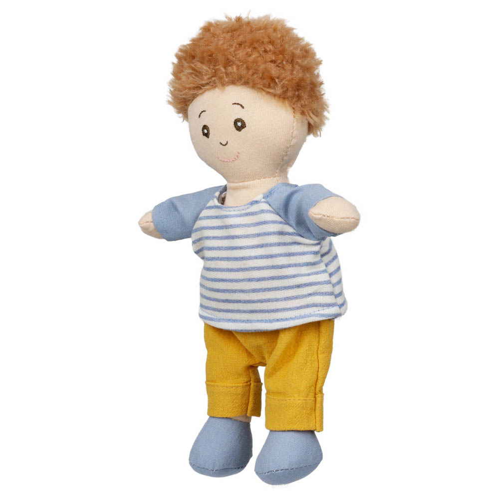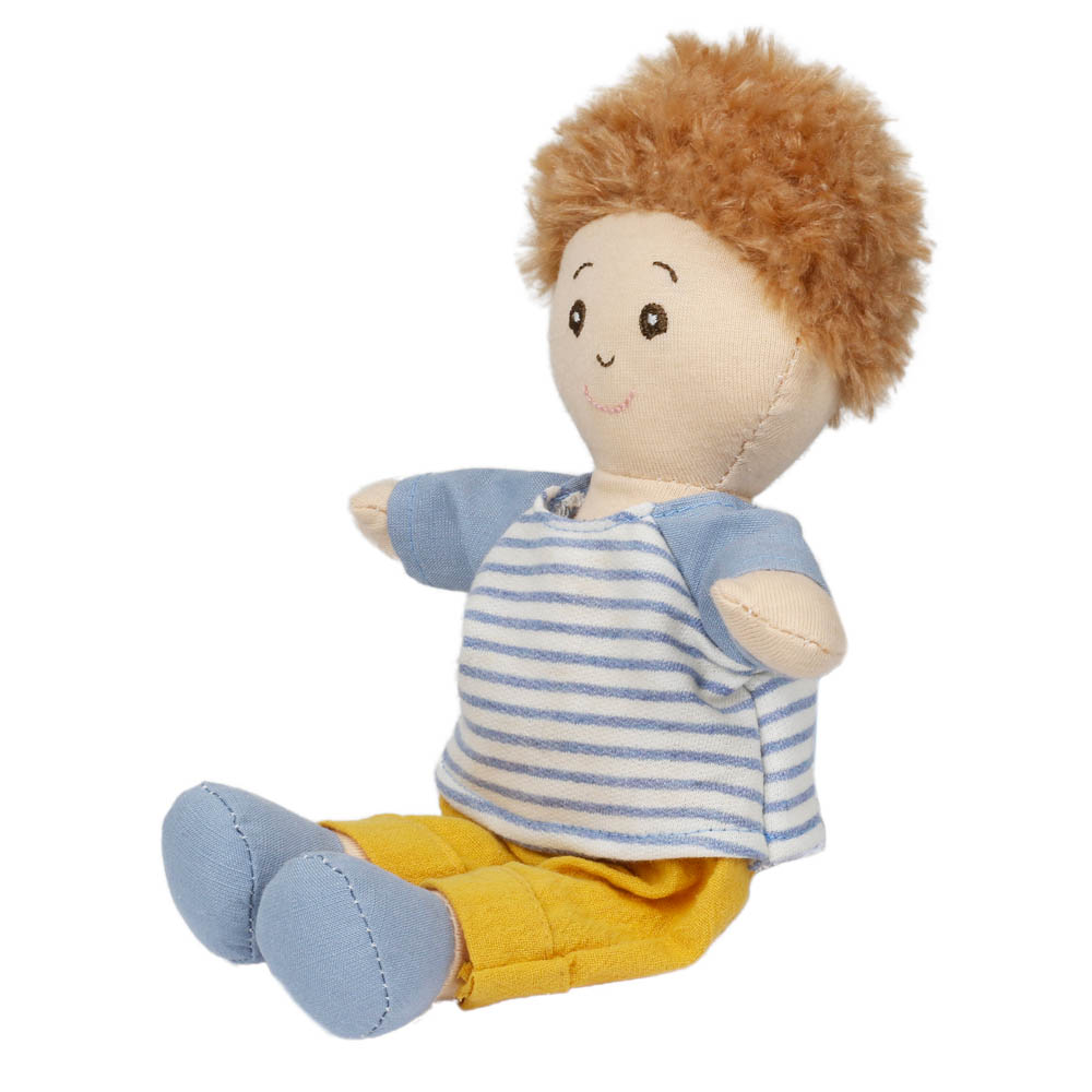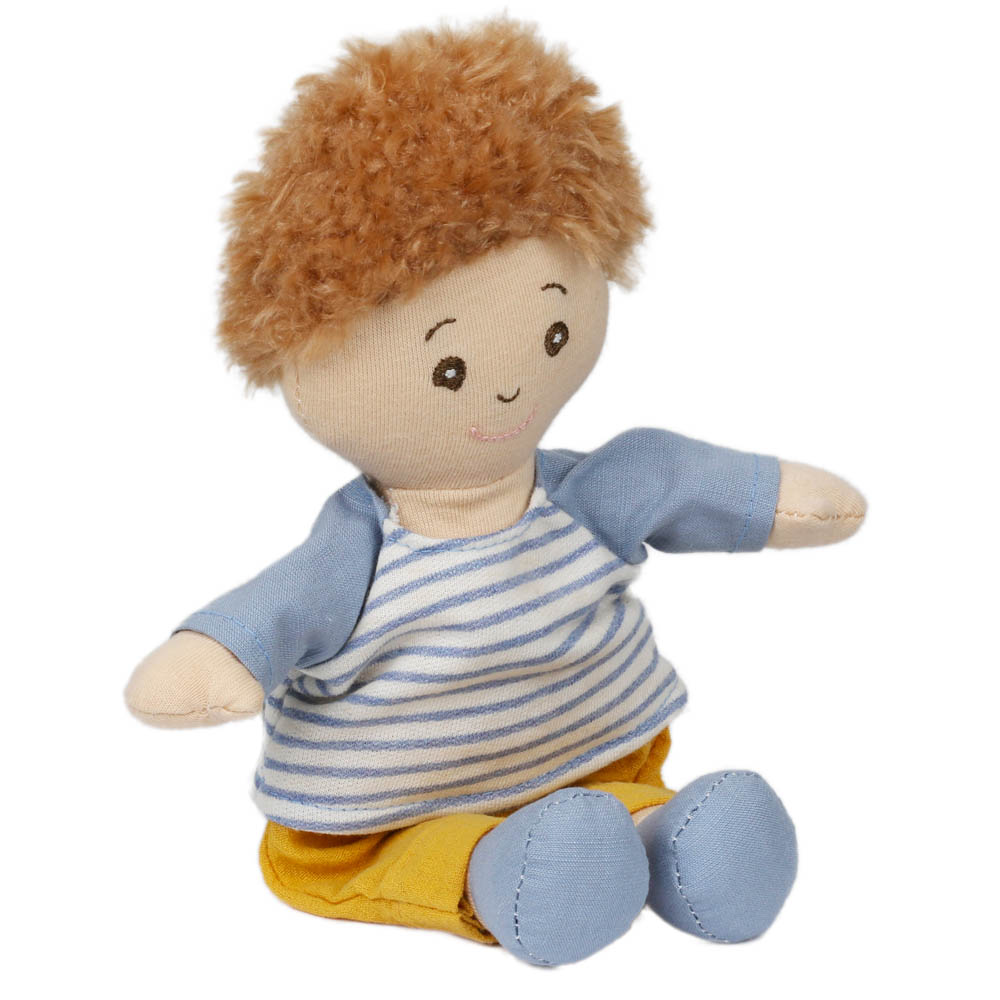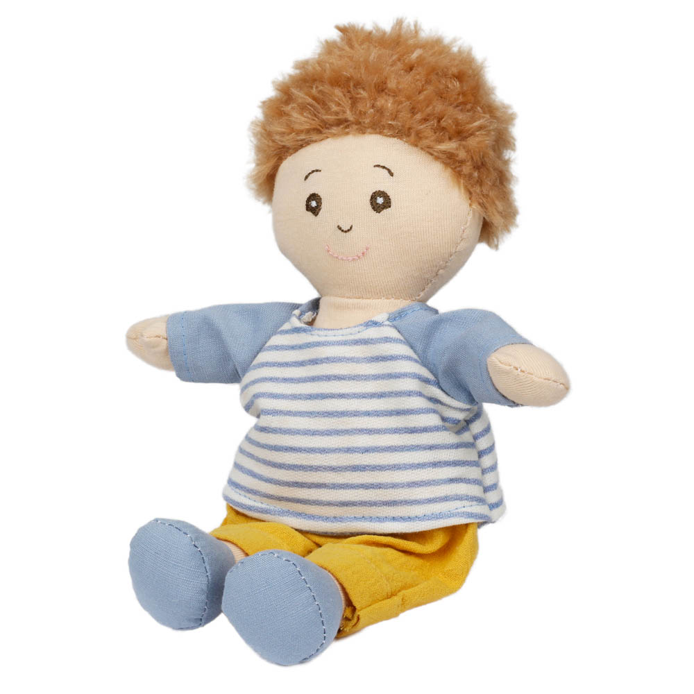 - Introducing the Wilberry Dolls Boy in a classic blue outfit, a beautifully soft cloth doll with sweet embroidered features and adorable brown curly hair. Dressed in a striped blue top with mustard trousers and blue shoes, this cheerful little boy brings adventure and cuddles to every playtime.
